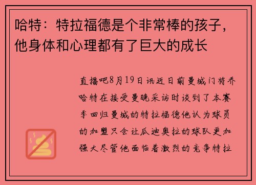 据悉,今年夏天,曼联有3名一线队球员和6名青训营球员合同到期,已经离队。其中,已经有3名球员已经找到新工作。这3名已经找到新工作的球员是埃文斯、萨姆・穆雷以及汤姆・迈尔斯。埃文斯已在曼联管理层任职,而萨姆・穆雷和汤姆・迈尔斯则分别加盟卡利斯尔联和罗奇代尔。剩下的6名球员则至今还没找到新东家。这6名球员分别是:埃里克森、林德洛夫、休伯特-格拉奇克、杰克-金登、汤姆-伍斯特以及詹姆斯-诺兰。近日,《曼...